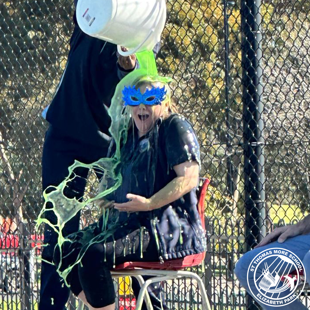 While we are definitely looking forward to the Colour Run, it’s fair to say our focus for the last week has been solely on… slime! The students in the lead of our fundraising tally were the lucky ones chosen to SLIME their choice of teacher or co-educator. We’re super proud of all our students for being so motivated to raise much needed funds for our chosen charities, and equally proud of the brave souls who allowed their students to pour cold, green slime on them.